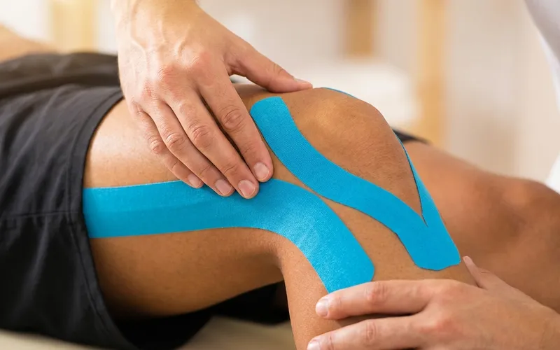 Εφαρμογή θεραπευτικού taping (αθλητικό και kinesio taping) για υποστήριξη αρθρώσεων και μυών.